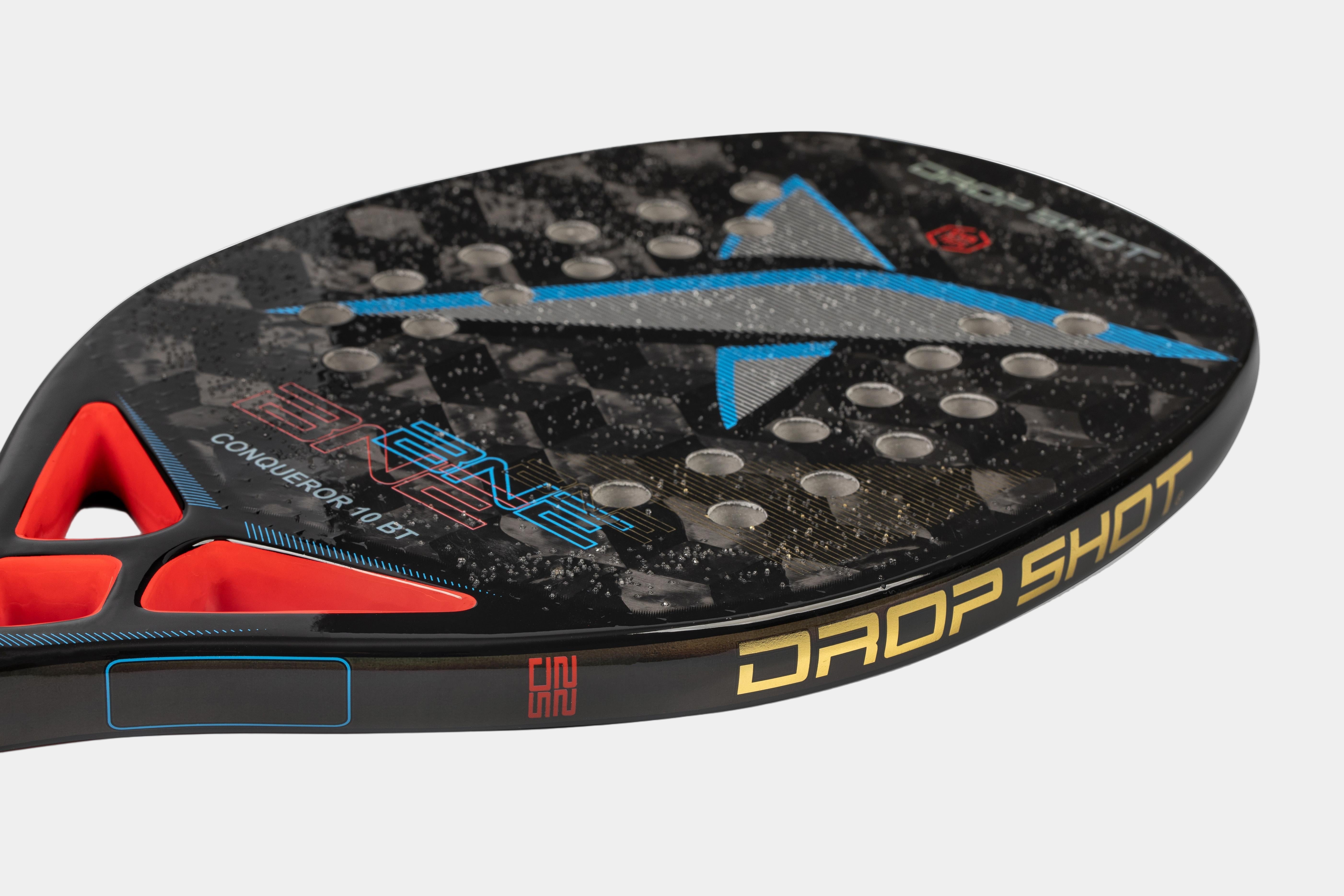 Dentro de la nueva colección de palas de pádel Drop Shot BT 2022 encontramos la Pala Drop Shot Conqueror 10 BT, una de las joyas de la colección. Siguiendo en la misma línea, el modelo destaca por su calidad. Gracias a la composición de sus materiales, el jugador podrá realizar un juego preciso de alto rendimiento. La Pala Drop Shot Conqueror 10 BT ofrece potencia y control en cada golpe.