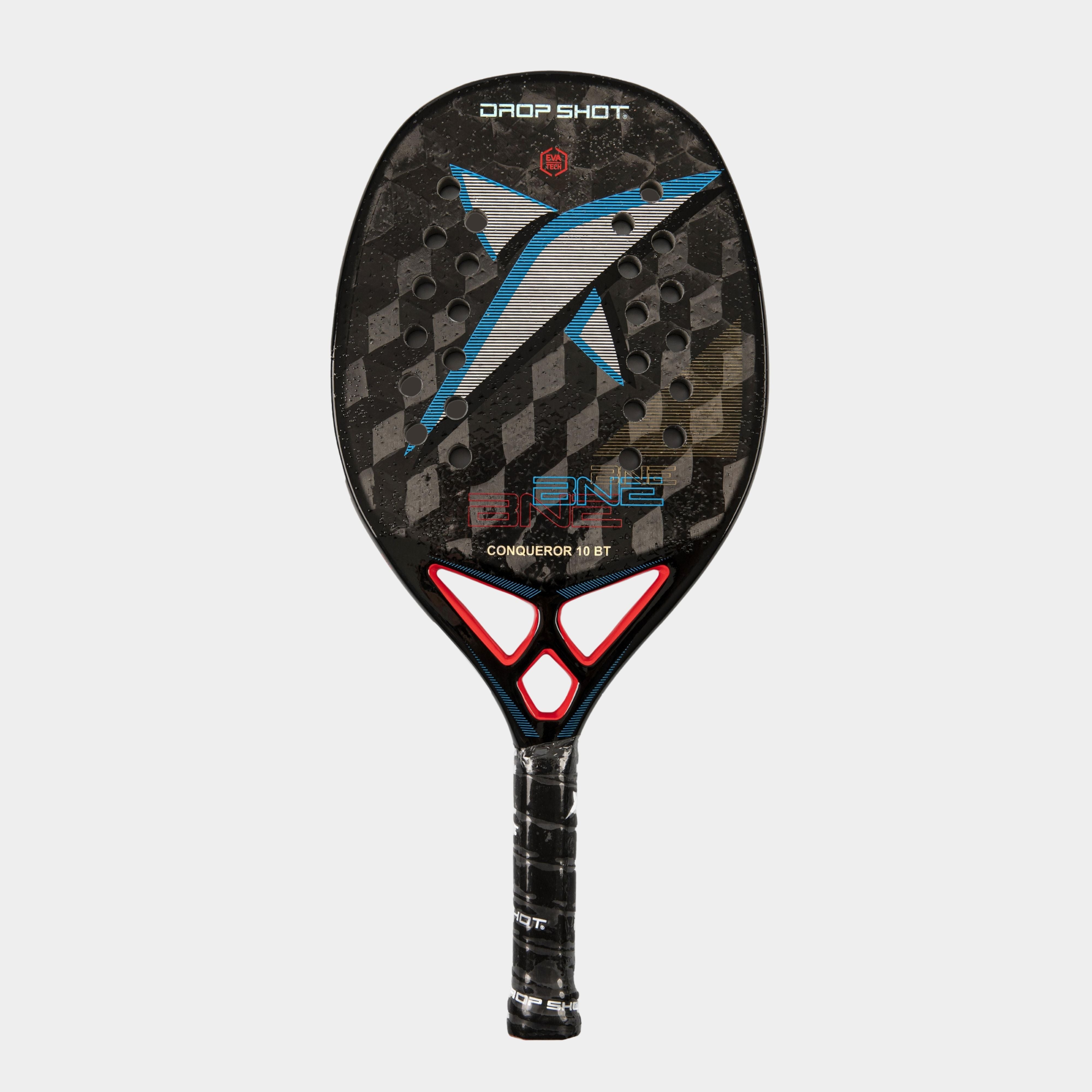 La Pala Drop Shot Conqueror 10 BT va dirigida a jugadores expertos con necesidad de potencia. El modelo sigue siendo un referente en nuestra colección por su dinamismo y potencia, pues la goma Eva Tech que la compone aporta el máximo control y elasticidad, facilitando así el golpeo y dominio de la pelota, mejorando el feeling al impacto y obteniendo así una jugabilidad alta.